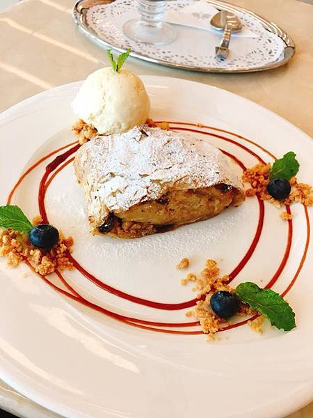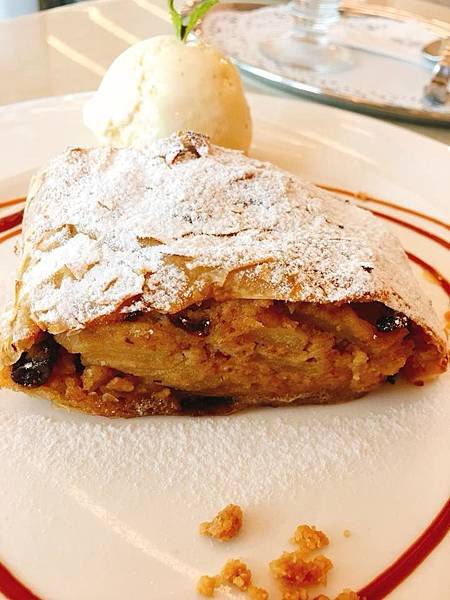 超愛蘋果派的我,基本上是只要菜單上有我都會點來試試(切片的除外),且服務人員加了一句說:如果您想試試道地的奧地利甜品又不排斥肉桂,一定要吃吃看。