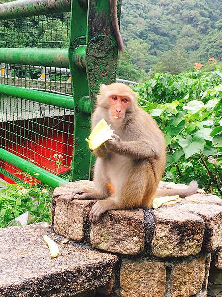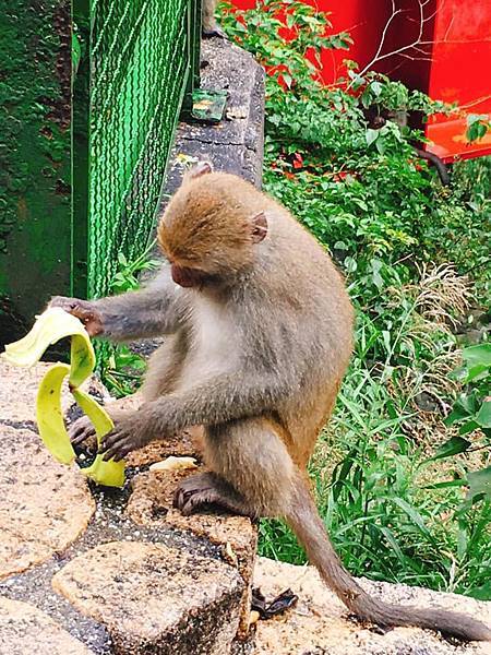 一遇見牠們時,正上演著猴仔偷客人車廂後座香蕉的戲碼~