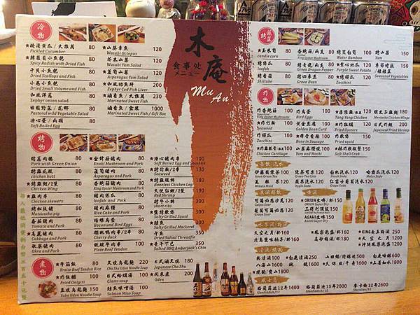 接著是菜單的部分~從冷物、烤物、煮物到烤蔬菜、炸物、各式飲品等應有盡有~更多資訊歡迎上木庵食事處粉絲專頁菜單查詢~