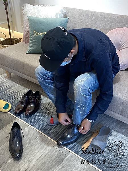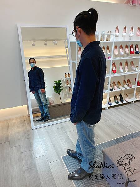 經店員細心的介紹,當天選擇了兩款來做試穿,有穿過皮鞋的人相信都有共同的心得,就是最擔心腳跟咬腳、腳尖不適、不透氣產生異味、保養上的不易,穿沒幾次皮面就開始剝落等。