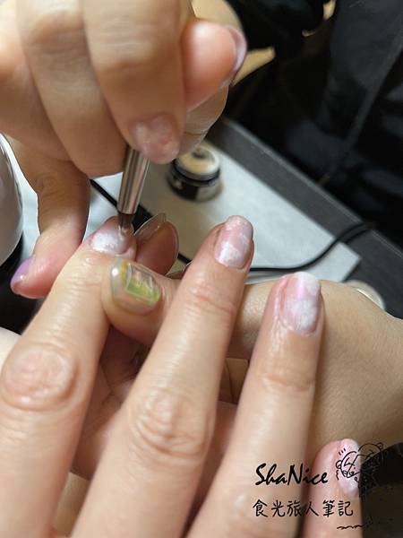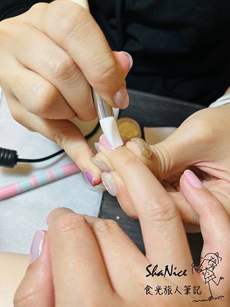 由於我先前的美甲為延甲設計,上頭還附有超牢固的鑽~因此在卸甲的部分,感恩當日的美甲師相當的耐心為我卸除,
